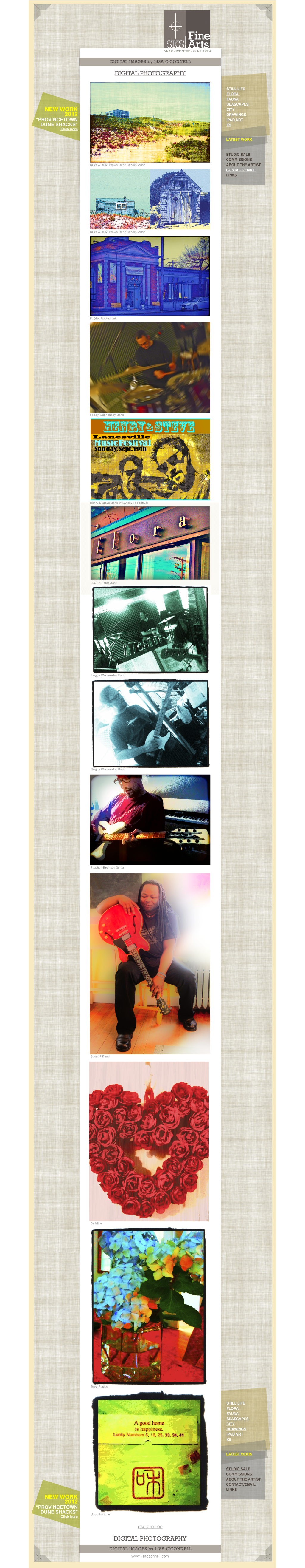 Lisa O'Connell Provinccetown Dune Shack SeriesSKS Fine Arts Still LifeLisa O'Connell / Artist and DesignerSKS Fine Arts Latest WorkCommissioned K9 Portraits in oil on canvas by Lisa O'ConnellSKS Hand Crafetd Dept.SKS Fine Arts  CitySKS Fine Arts SeascapesSKS Fine Arts iPad ArtcontactSKS Fine Arts BiographySKS Fine Arts FloraSKS Fine Arts CommissionsSKS Fine Arts Studio SaleSKS Fine Arts  FaunaSKS Fine Arts DrawingsLisa O'Connell, Digital Photography Lisa O'Connell Provinccetown Dune Shack Series Lisa O'Connell Digital Photography